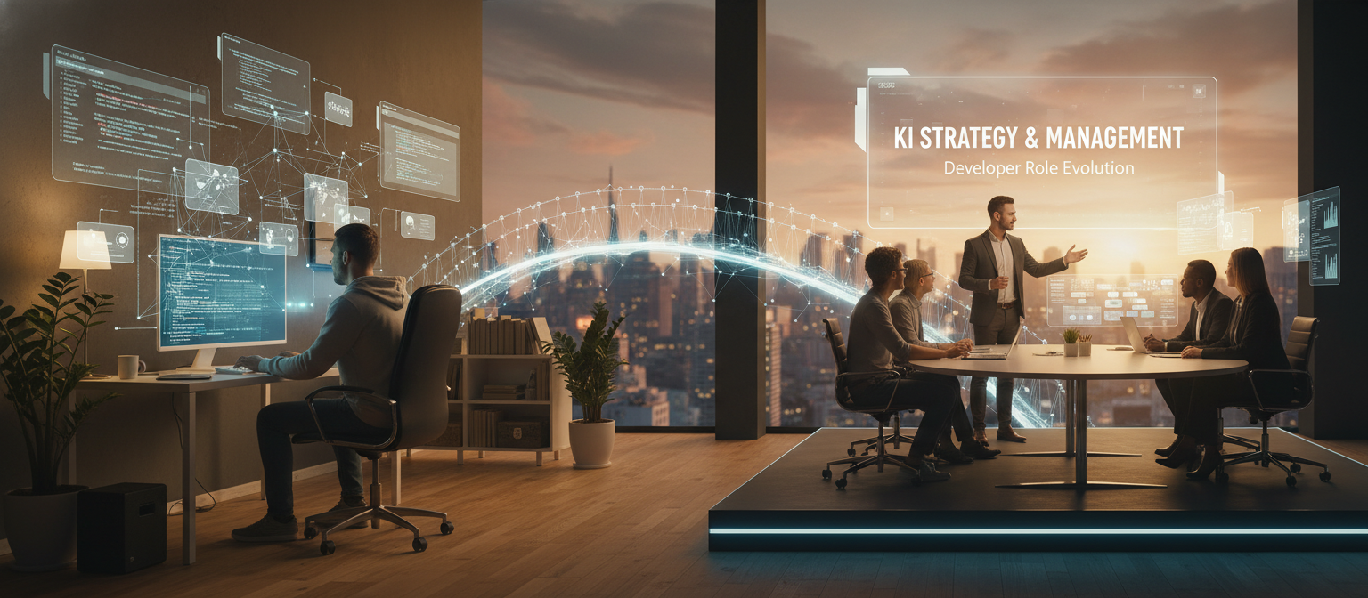 Entwickler stehen heute vor der größten Herausforderung ihrer Karriere: Sie müssen ihre Rolle komplett neu definieren oder riskieren, irrelevant zu werden. Aber hier liegt die Chance: Wer heute noch Code schreibt, kann morgen bereits strategischer KI-Manager sein, der intelligente Systeme orchestriert statt Zeilen zu tippen.